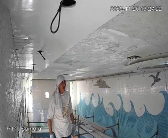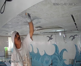 در روز پنجشنبه ۲۹ آبان، نیروهای تیم اجرایی در حال زدودن رنگ قبلی از روی سقف هستند و سقف در حال آمادهسازی برای اجرای آببندی و عایقکاری میباشد.