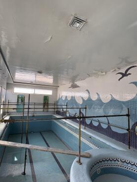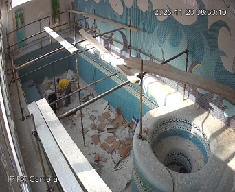 در روز پنجشنبه ۱۵ آبان ۱۴۰۴ آب استخر تخلیه شد و داربست بسته شد.
