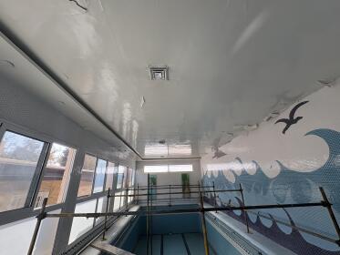 بهترین اجرا و زیباترین استخر هم بدون نورپردازی مناسب، جلوه نخواهد داشت؛ بنابراین مقرر شد تا سقف کاذب و نورپردازی استخر هم همزمان با آببندی توسط مجموعه ایزوژل انجام شود.